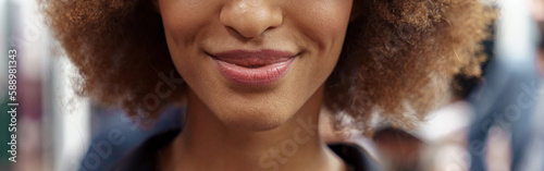 © Kostiantyn, Obraz premium Close up of smiling african businesswoman standing in modern office