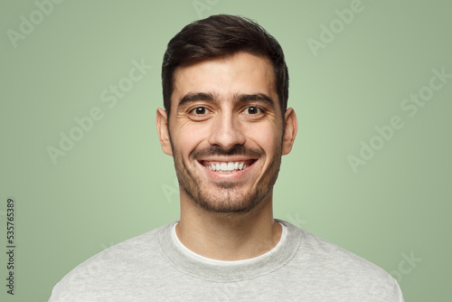 Obraz premium Close-up of smiling handsome man isolated on green background