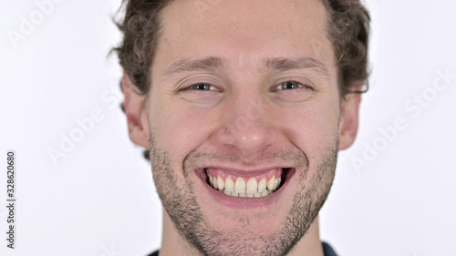 Obraz premium Close up of Smiling Young Man Face on White Background