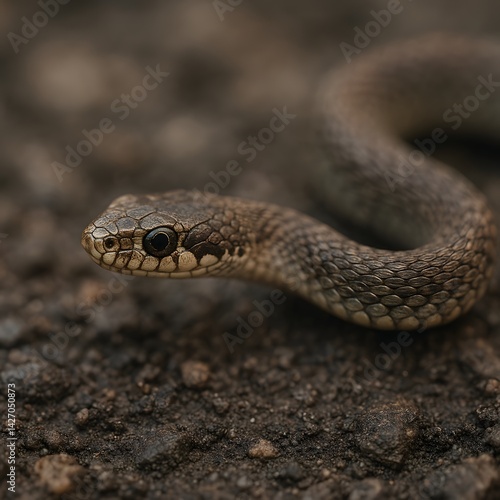 © Ника Алексеенко, Fototapeta premium Close-up of snake on rocky ground surface