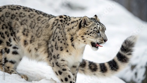 © RisanRisan, Obraz premium Close Up of Snow Leopard Walking on Snow With Playful Cute Expression
