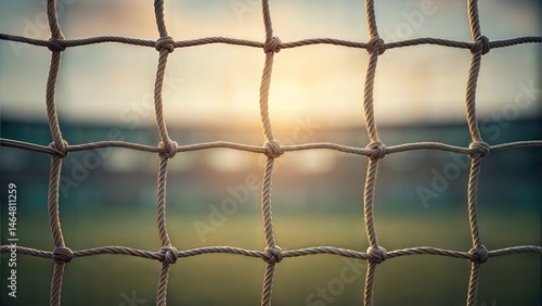 Fototapeta premium Close-up of soccer net texture with blurred background