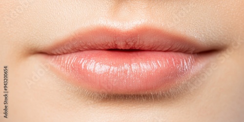Fototapeta premium close-up of soft pink lips with natural makeup, smooth and youthful skin...