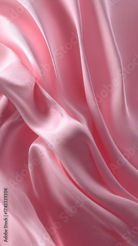 Fototapeta premium Close-up of soft pink satin fabric with flowing folds and smooth texture