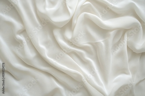 Fototapeta premium Close up of soft, white fabric with folds and wrinkles.