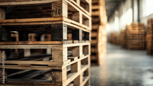 Fototapeta premium Close-Up of Stacked Euro Pallets in an Empty Warehouse, Perfect for Logistics...