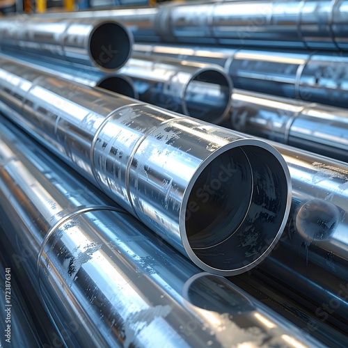 © Armaya, Naklejka premium Close-up of stacked metal pipes