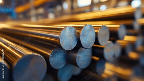 © SRITE KHATUN, Naklejka premium Close-Up of Stacked Metal Rods in Industrial Setting