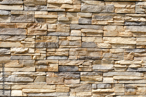 © Chad, Fototapeta premium Close-Up of Stacked Stone Masonry Wall with Textured Natural Colors