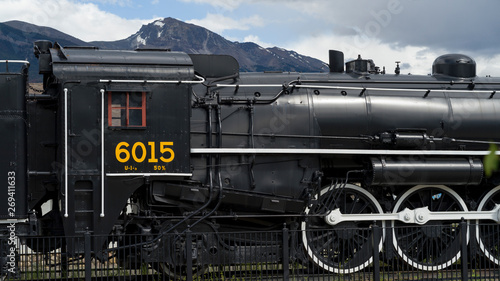 © klevit, Fototapeta premium Close-up of steam train engine, Jasper National Park, Jasper, Alberta, Canada