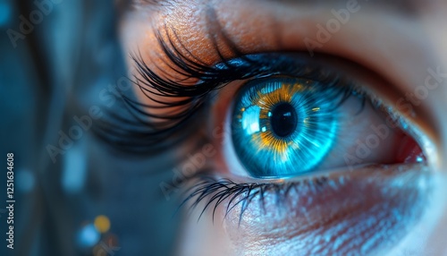 © Argan, Fototapeta premium Close-up of Striking Blue Human Eye with Long Eyelashes Detail