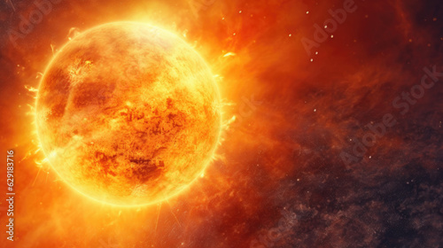 © Pungu x, Obraz premium Close-up of sun with solar storm in space. Generative AI.