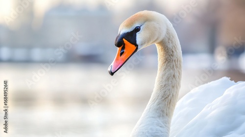 Obraz premium Close-up of swan's elegant profile. Soft-focus background