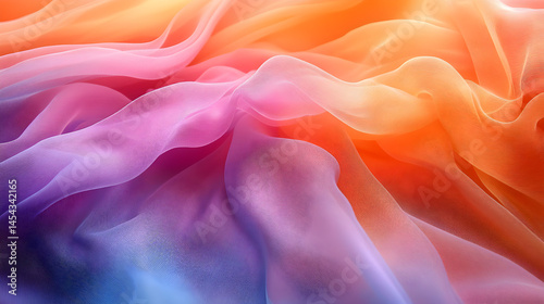 © Nawab stock, Fototapeta premium Close-up of swirling pastel rainbow fabric tulle with rich texture
