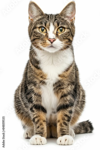 © NovaVision, Obraz premium Close-Up of Tabby Cat on White Background. Generative ai