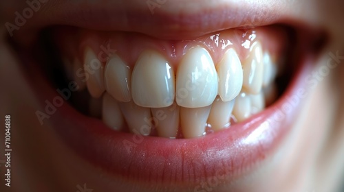 Fototapeta premium Close up of teeth and gums, Natural teeth. Generative AI.