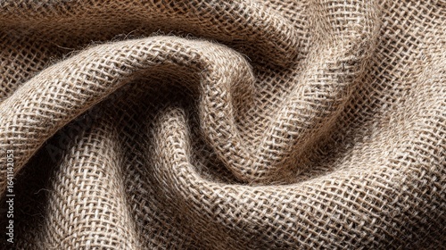 © ikkilostd, Fototapeta premium Close-up of textured burlap fabric displaying its intricate woven patterns and natural tones.