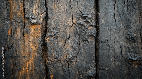 © yoga, Obraz premium Close-up of textured dark wood with cracks and natural patterns.
