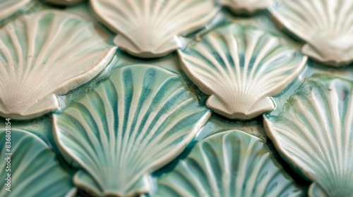 Obraz premium Close-up of Textured Green Ceramic Tiles