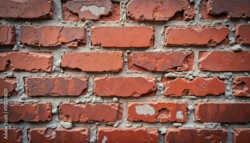 Obraz premium Close-up of textured red brick wall with worn surface and mortar details