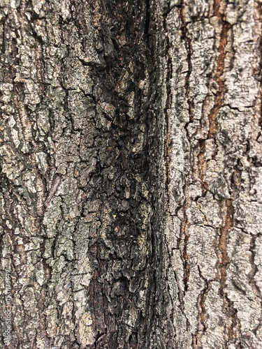 Fototapeta premium Close-up of textured tree bark with deep grooves.