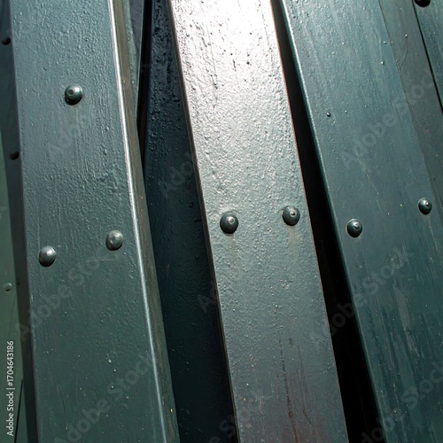 © Vuny, Obraz premium Close-up of textured wooden panels with rivets