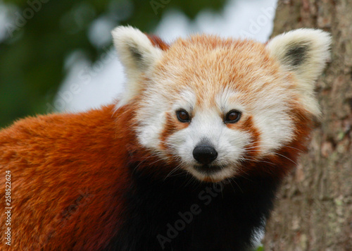 © Helen Davies, Naklejka premium Close up of the head and shoulders of a red panda (ailuris fulgens) in a tree