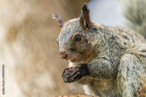 Fototapeta premium Close-up of the head of a squirrel eating