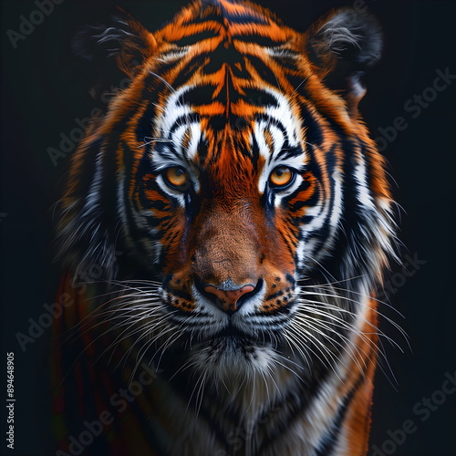 © W.O.W, Naklejka premium Close-up of the intense gaze of a majestic Bengal tiger with vibrant orange and black stripes
