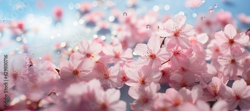 © Andrew, Obraz premium Close up of the Japanese sakura, cherry blossom. Wide banner, backdrop. Created using generative AI tools.