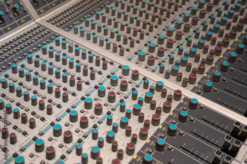 © Michal Lech, Obraz premium Close-up of the knobs of mixer in recording studio.