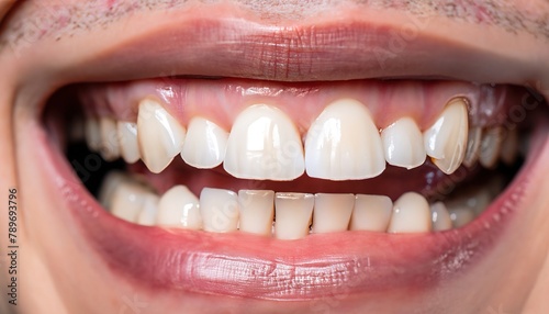 © juanorihuela, Fototapeta premium Close-up of the mouth of smiling man with perfect teeth