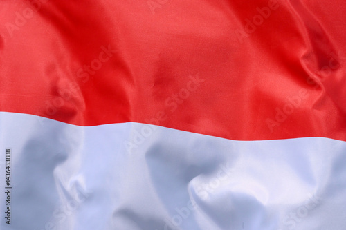 Fototapeta premium Close-up of the national flag of Indonesia fluttering in the wind, wave pattern