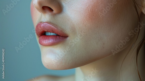 Obraz premium Close up of the neck and chin area of a woman in her late fifties with some wrinkles around her mouth.