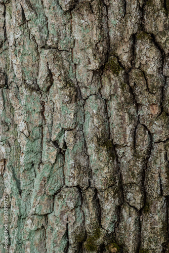 © Oleh Marchak, Obraz premium close up of the old bark texture pattern in the forest Vintage background