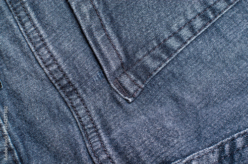 © dimas830, Naklejka premium Close-up of the seam and texture on grey jeans.