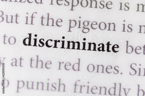 © Jon, Obraz premium close-up of the term Discriminate on paper background