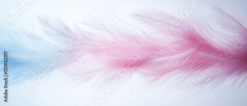 Obraz premium Close-up of three feathers in different colors - blue, pink, and white.