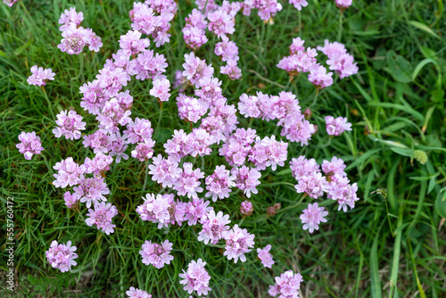 Naklejka premium Close up of thrift (armeria maritima) flowers in bloom