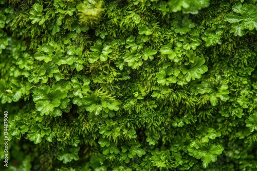 Fototapeta premium Close up of thriving green moss and liverwort growth