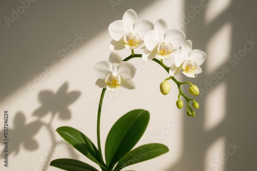 © CreativeBro, Obraz premium Close-up of tiny orchid against contrasting light and shadow backgrounds