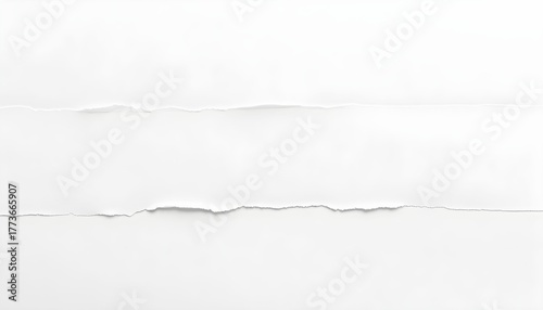 © EkaDewi, Obraz premium Close-up of torn white paper, showing rough edges and subtle texture, creating an abstract and minimalist composition.