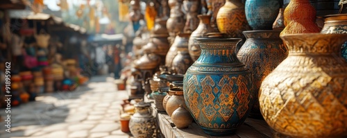 Fototapeta premium Close-up of traditional and modern items from different cultures in a global e-commerce marketplace,