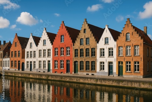 © TheWaterMeloonProjec, Naklejka premium Close-up of traditional homes and waterways in a historic European town