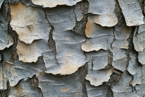 © Nico, Fototapeta premium Close-up of Tree Bark with Flaking Layers