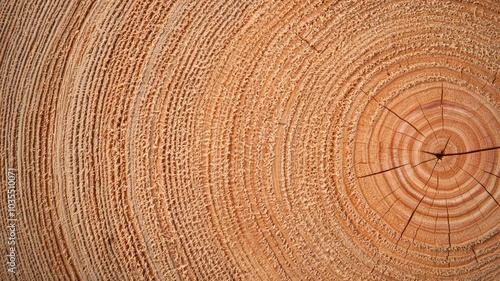 © tanapat, Naklejka premium Close-up of tree rings showcasing natural wood texture and patterns.