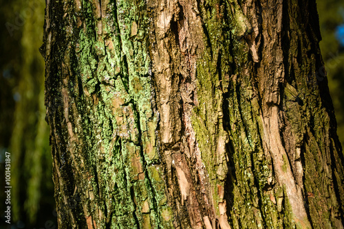 © 子程 龚, Obraz premium Close-up of tree trunk texture and moss details