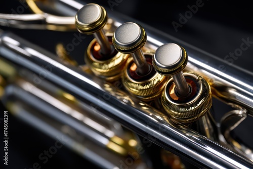 Naklejka premium Close-up of Trumpet Valves and Brass Surface Reflections