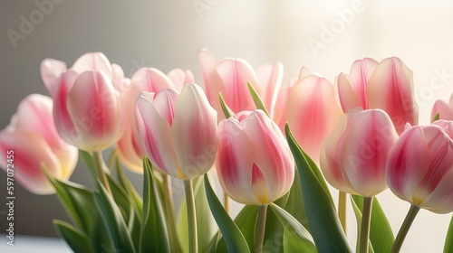 © Маргарита Вайс, Naklejka premium Close up of tulips on a light blurred background. Generated ai.