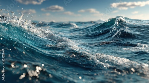 Obraz premium Close-up of turquoise ocean wave with sunlight reflecting off the surface,...